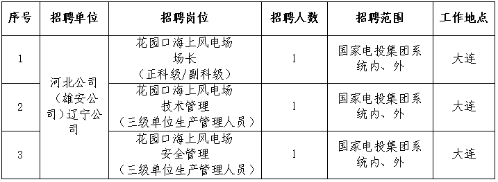 上述材料扫描件统一压缩为一个压缩包,压缩文件不超过10M,压缩文件命名格式为“应聘岗位+姓名”(例:花园口海上风电场场长+张某),发送至报名邮箱。