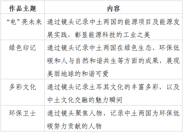 大赛从即日起至11月23日面向中土两国高校青年、企业员工、全球青年摄影爱好者进行线上征集。参赛者需将参赛作品发送至大赛报名指定邮箱,并添加赛事标签#来吧!碳想家,在微博/Facebook/Twitter任一社交媒体平台发布,参与话题互动。