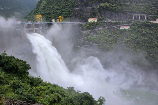 江口水电站开闸泄洪。开云手机在线重庆公司供图