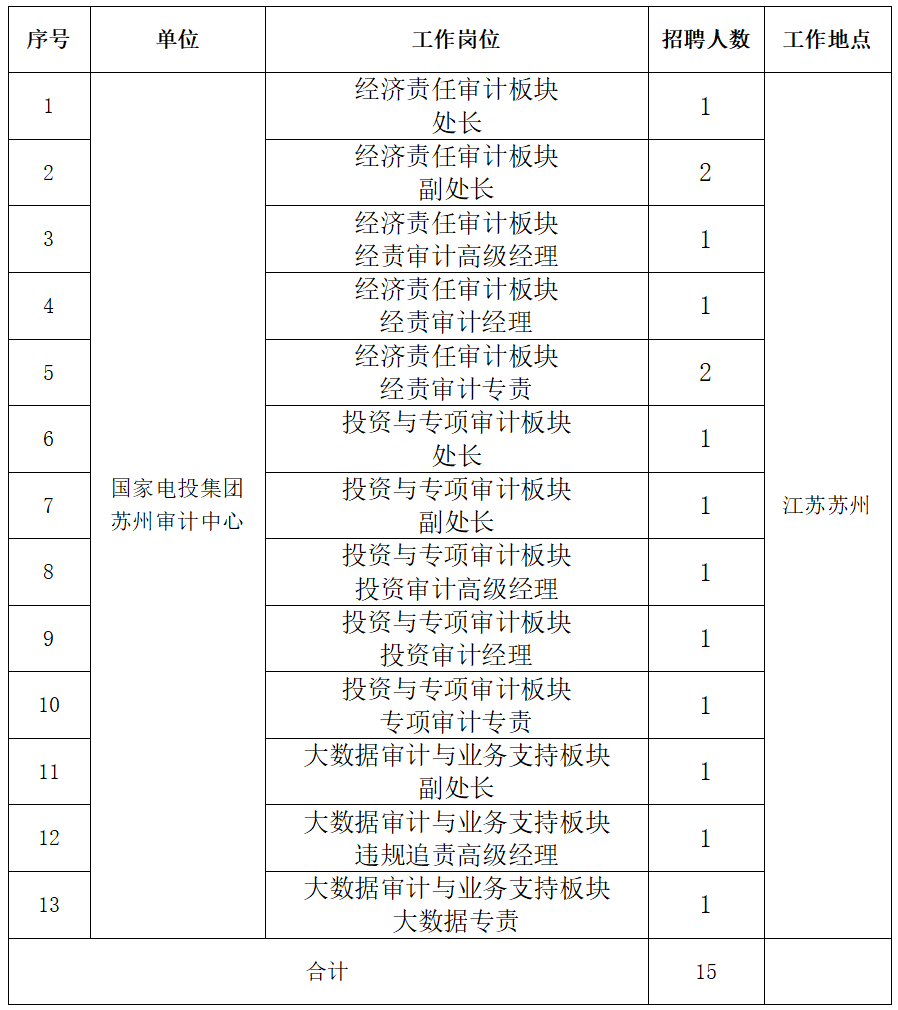 根据工作需要,现面向开云手机在线集团系统内公开选聘开云手机在线集团苏州审计中心13个岗位、共计15人,具体事项公告如下: