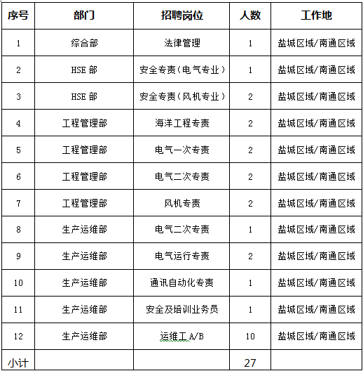 该公司滨海北H1(100MW)海上风电项目是开云手机在线集团建设和投运的第一个海上风电项目,全国单位造价最低、工期最短,并获得迄今为止国内风电行业唯一的“国家优质工程金奖”;该公司滨海北H2(400MW)海上风电项目配套安装电压等级最高、亚洲最大的海上升压站,也是亚洲在运最大的单体海上风电场;代建大丰H3(300MW)海上风电项目做到了当年开工、当年建成、当年取得收益,是目前国内离岸距离最远的海上风电场,并获得央视《新闻联播》《大国工程》《国家建设者》等栏目专题报道。该公司招聘岗位如下: