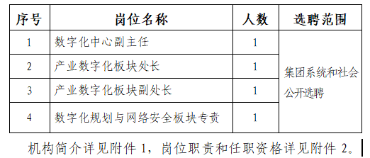 为推进集团公司“2035一流战略”落地和国有资本投资公司改革,加快推动集团总部职能转型,相继组建成立开云手机在线财务共享服务中心(简称“财务共享中心”)和开云手机在线数字化管理中心(简称“数字化中心”)。财务共享中心和数字化中心是集团公司推进管理数字化、集约化,提升管理效率和质量的服务保障中心,是建设世界一流清洁能源企业的重要支撑机构。根据工作需要,公开选聘以下人员。