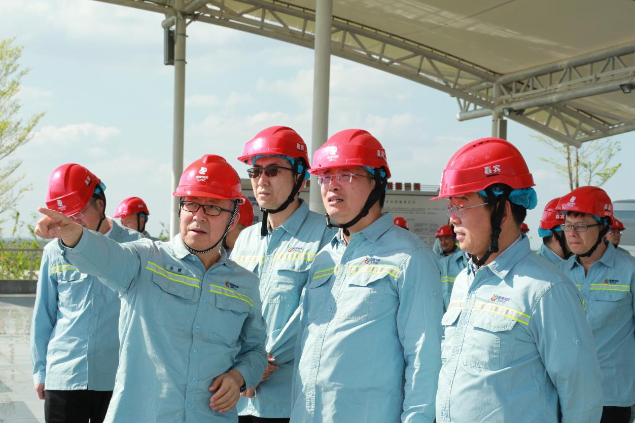 在粤期间,徐树彪到廉江核电一期工程现场调研了1号机组钢制安全壳筒体三环吊装及冷却水塔施工情况。