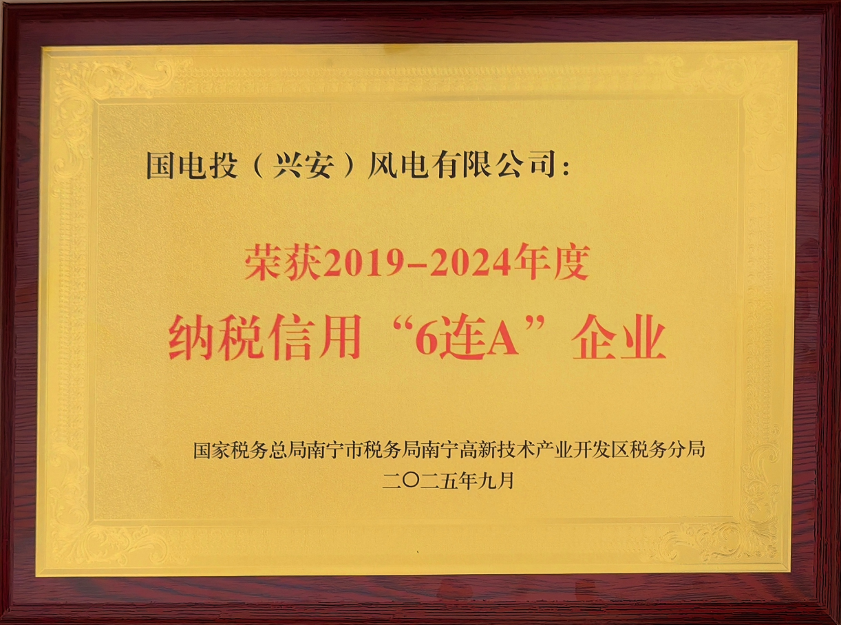 近日,开云手机在线集团广西公司兴安风电公司获南宁市税务局南宁高新技术产业开发区税务分局颁发的2019-2024年度“纳税信用‘6连A’企业”荣誉,展现了企业在依法纳税、诚信经营方面的卓越表现。