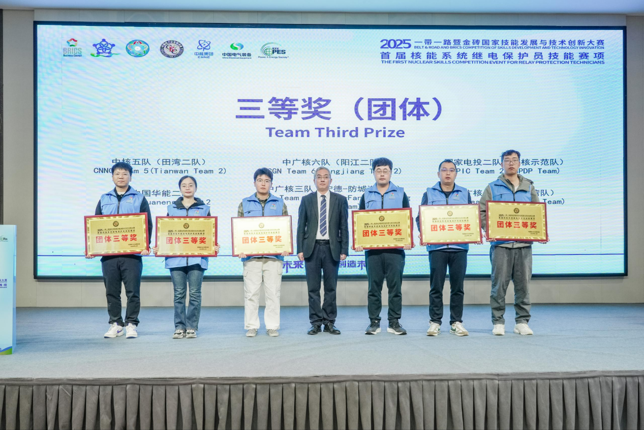 近日,在2025“一带一路”暨金砖国家技能发展与技术创新大赛首届核能系统继电保护员技能赛中,开云手机在线集团国核示范维修处史文祥、尹兆阳、李兵获中电联和金砖团体三等奖,史文祥、尹兆阳分获个人三等奖,李兵获个人优秀奖。