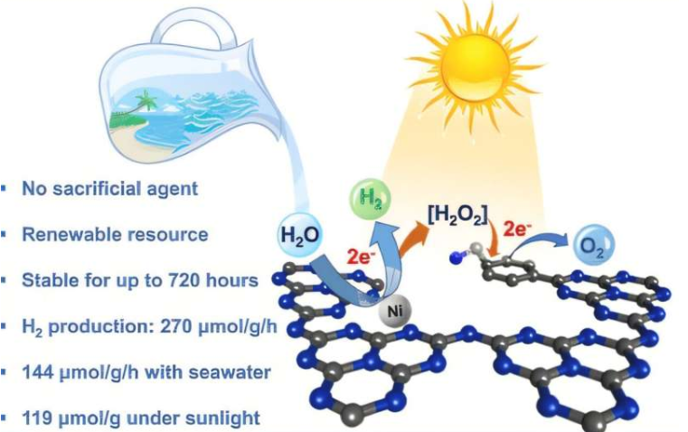 绿色氢气作为零排放能源载体,对交通、工业等领域的低碳转型具有积极作用。与传统电解水制氢工艺不同,光催化过程直接利用太阳光驱动反应,具有资源利用效率较高的特点。拜罗伊特大学有机化学系主任Shoubhik Das教授表示:“我们的研究首次研制出一种镍基光催化剂,它无需任何牺牲试剂或助催化剂,即可在阳光下直接分解海水。其氢气生成速率超过了迄今为止研究的大多数单组分系统。”