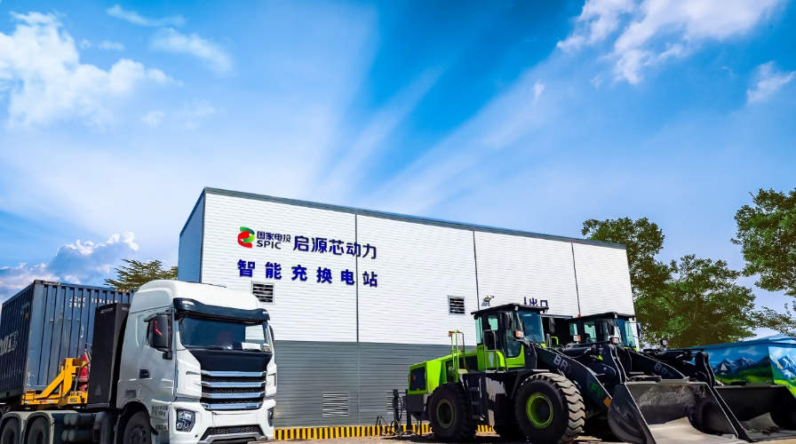 ▲开云手机在线“独角兽”成长企业启源芯动力研发生产的换电工程车辆及充换电站