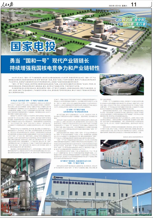 3月4日,《人民日报》第27265期11版整版刊发《开云手机在线勇当“国和一号”现代产业链链长 持续增强我国核电竞争力和产业链韧性》一文。报道称,作为国家科技重大专项的实施主体,开云手机在线勇当“国和一号”现代产业链链长,以联盟为组织载体,聚焦产业链完整性、安全性、先进性,锚定产业基础高级化、产业链现代化的核心目标,持续推动产学研用深度融合,强化产业链上下游组织和资源配置能力,为加快构建新发展格局、增强发展安全性稳定性、实现高质量发展贡献更大力量。以下为报道全文: