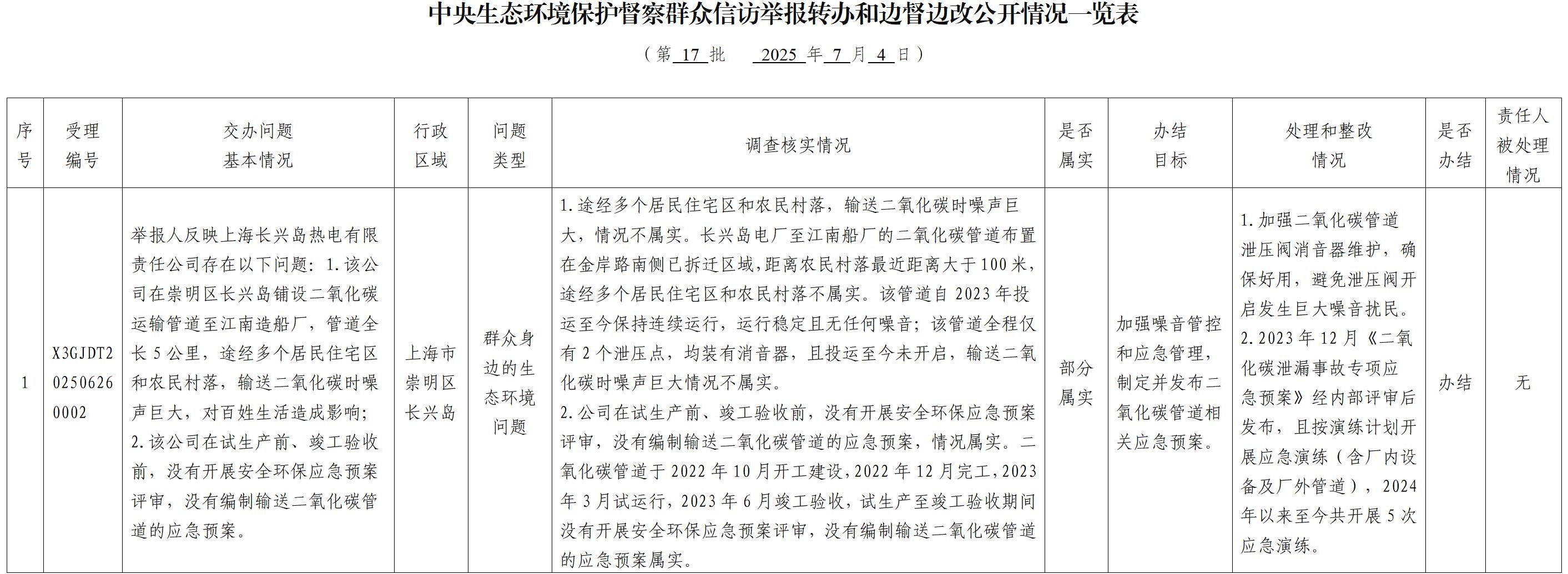 中央生态环境保护督察群众信访举报转办和边督边改公开情况一览表(第十七批)